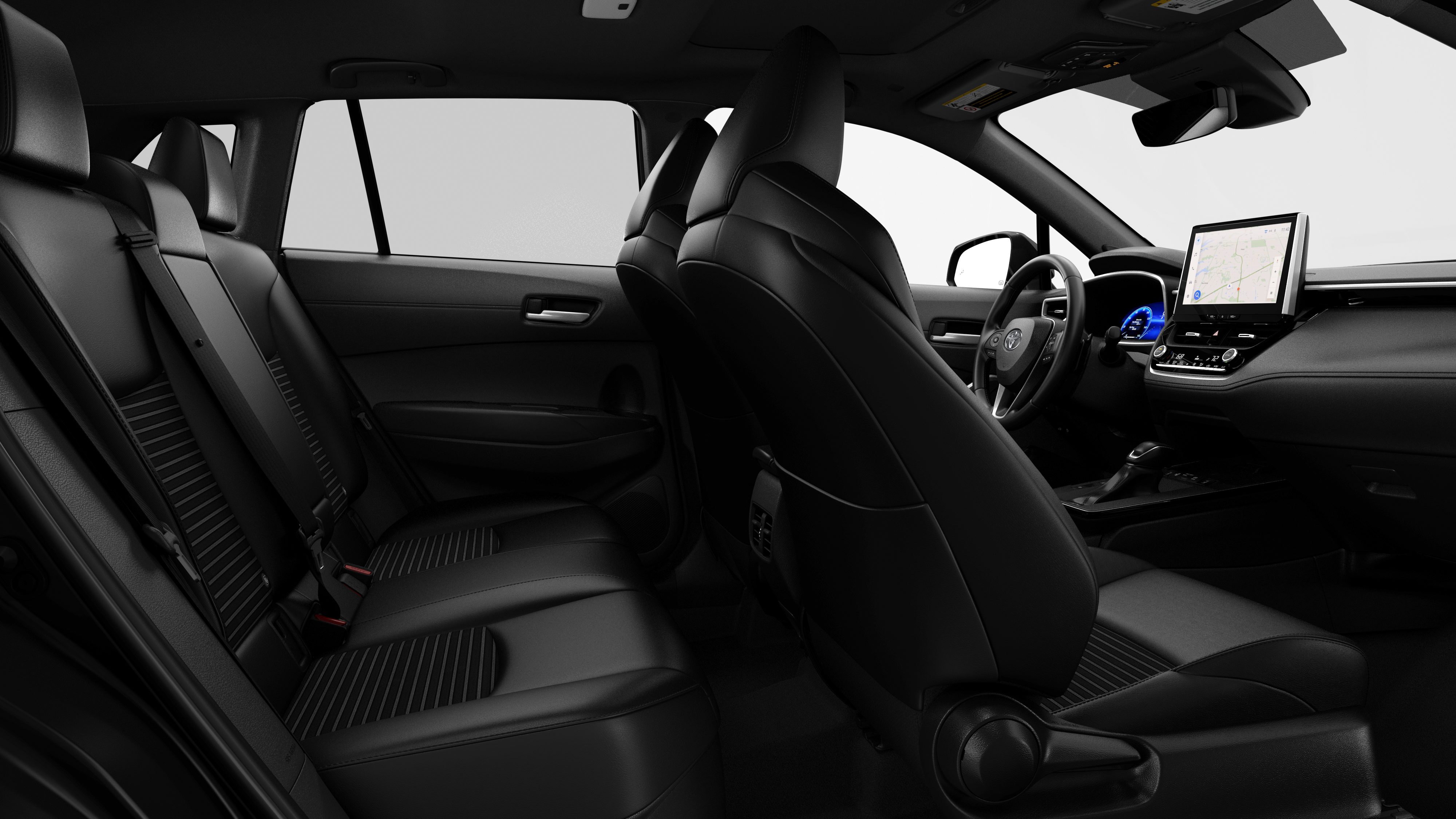 - Dual sun visors with sliding extensions, illuminated vanity mirrors