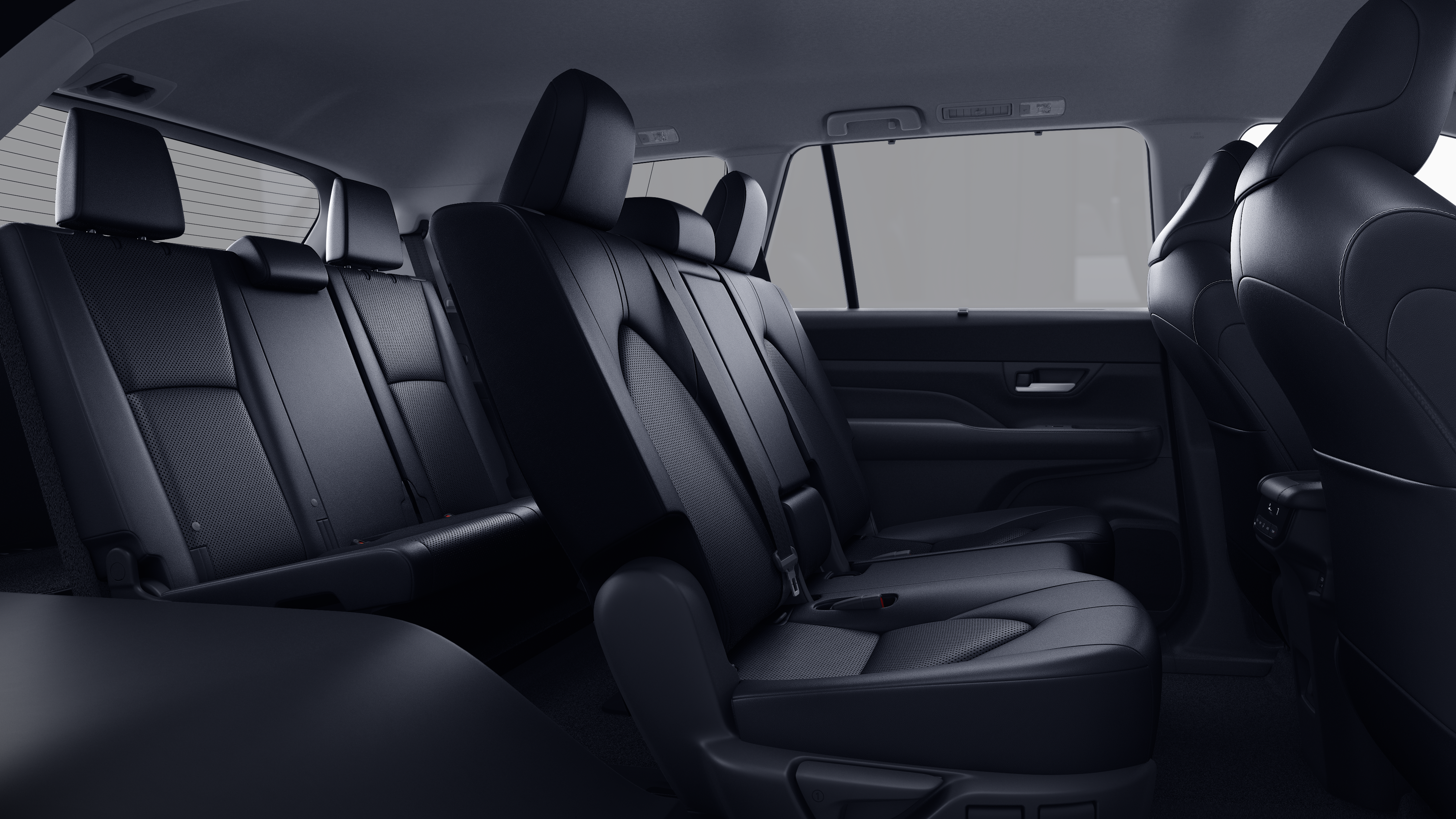 - 7-passenger seating with second-row fold-down captain's chairs and fold-down inboard armrests, adjustable headrests and two cup holders mounted on the floor; and 60/40 split, fold-down third-row seats with sliding headrests and recline function