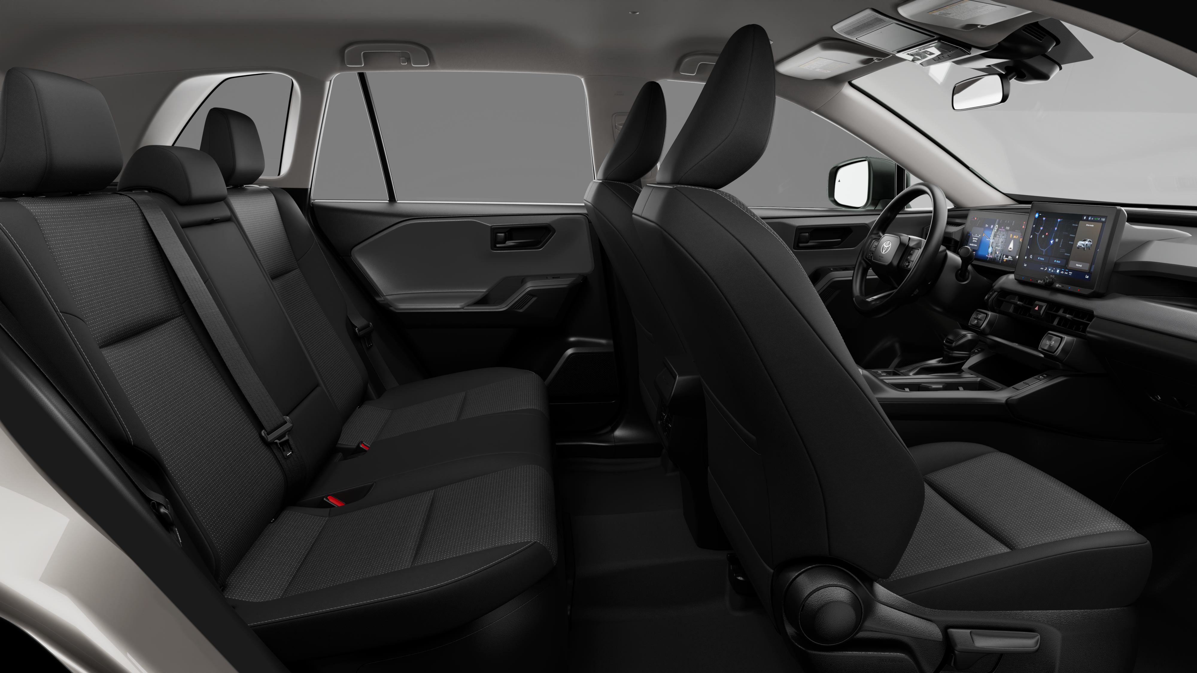 - Black carpet flooring with driver-side footrest
