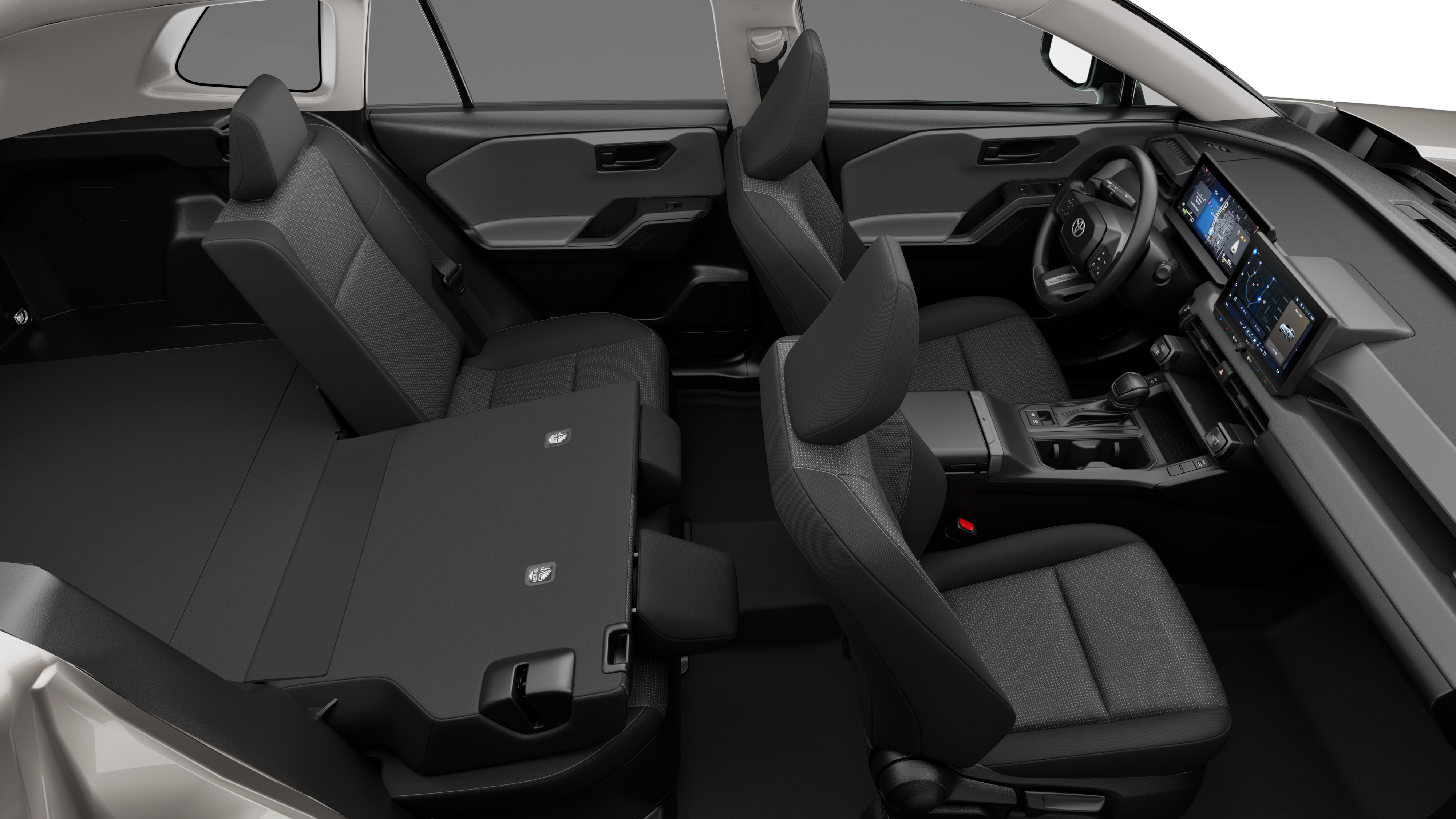 - 60/40 split reclining fold-flat rear seat with center armrest and cup holders