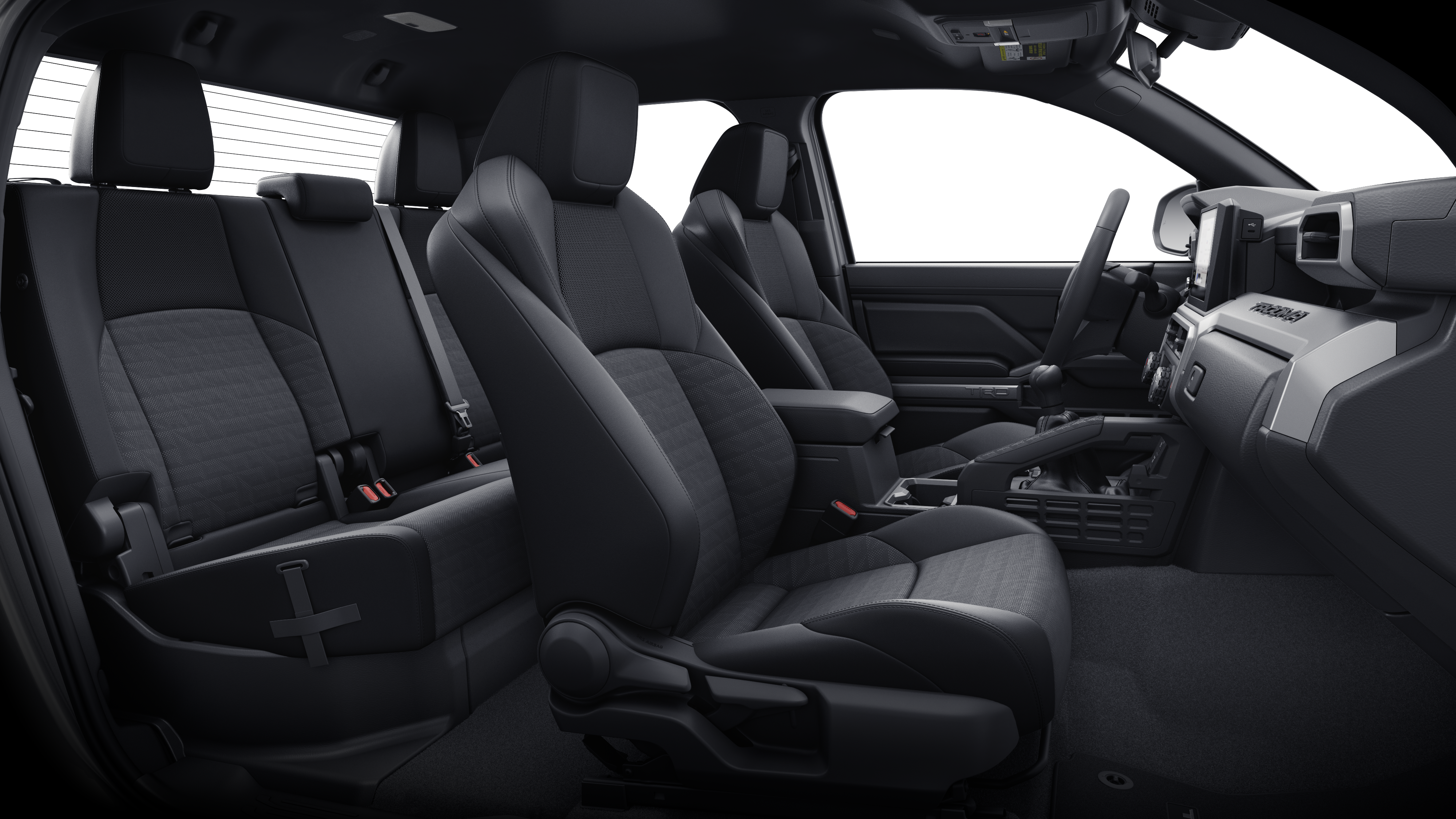 - Fabric-trimmed seats; 6-way manually adjustable driver and front passenger seats with 2-way power-adjustable lumbar support on driver's seat only